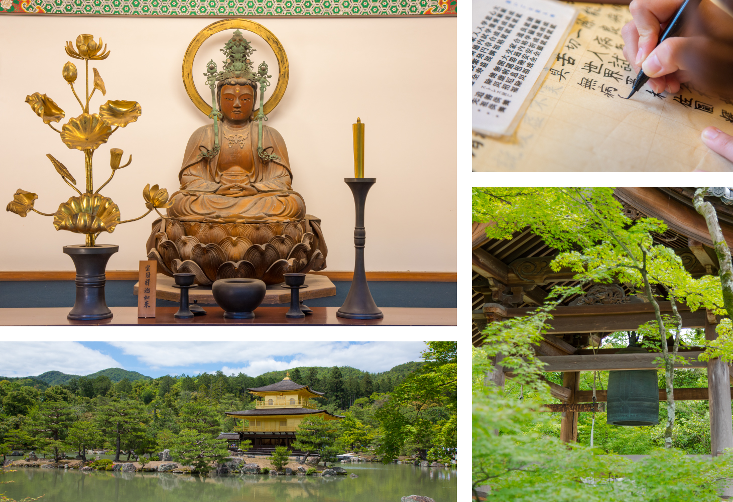 Debido a que su pabellón de las reliquias, Kinkaku («pabellón dorado»), es especialmente famoso, se le conoce popularmente como Kinkaku-ji.