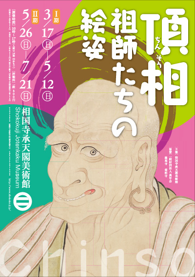 また、Ⅱ期には中峰明本(ちゅうぼうみんぽん)の中国元時代製作の頂相から近世相国寺で制作された頂相まで複数ならべて公開いたします。同じ禅僧の頂相でも絵師によって異なる細かな差異を比較していただけましたら幸いです。